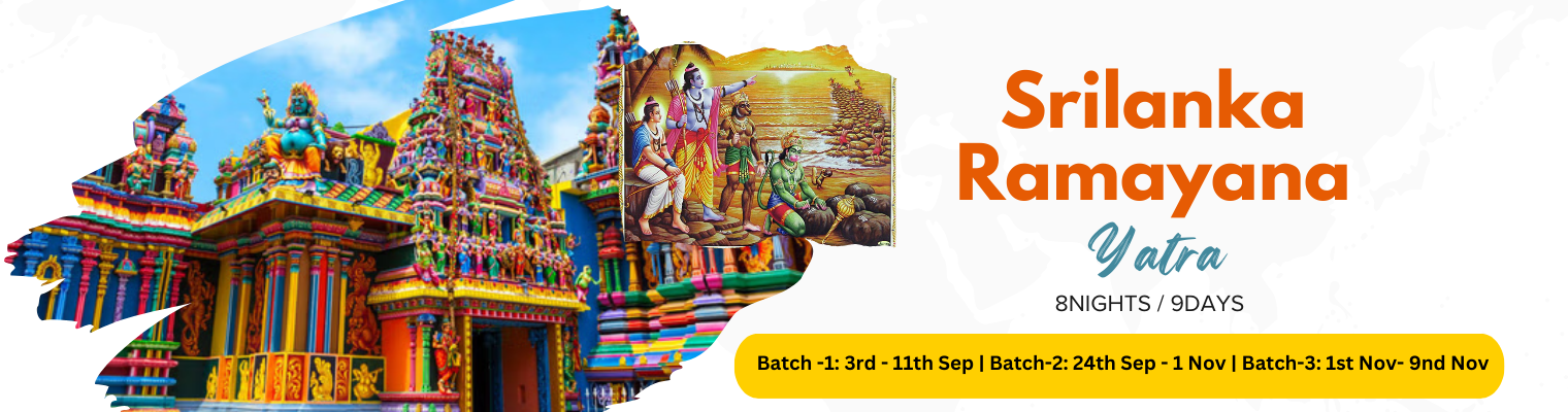 We visit so many places connected to Epic Ramayana form this yatra, like Ashoka Vatika, Sita Kotuwa, Ramalingeshwaram, Haggala Garden, Ella Ravana Cave, Muneeshwaram, Anuradhapura, Mannar, Thirukeetheshwaram, Nakuleshwaram, Jaffna, Nagadweepam, Neelavari, Kanniaya, Trincomalee, Laxmi Narasimha, Trikoneshwara, Shankari Shaktipeeth, Sigriya, Kandy, Dunuvila, Lankadheeswara, Divirumpola, Kataragrama, Sella Kataragrama, Ussangoda – burnt Ravana airport, Rummasala Sanjeevani Mountain, Galle – Tenavaram Temple, Colombo, Vibhisana Temple.